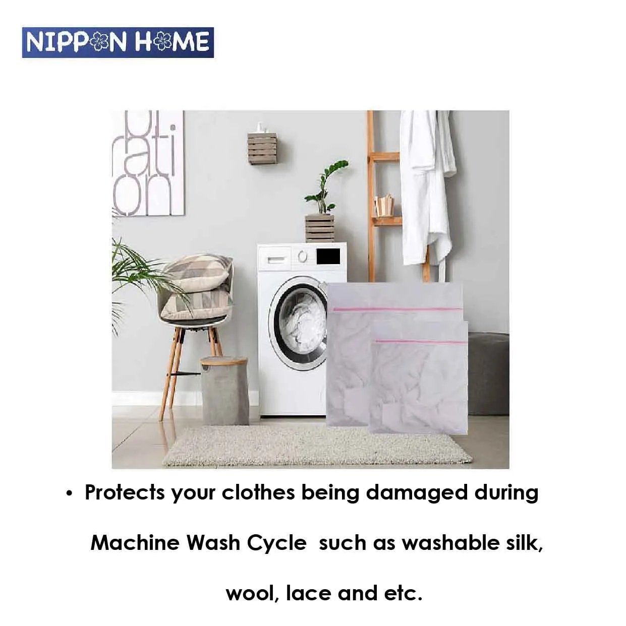 For this laundry net bag / mesh laundy bag designed that can be protects your clothes being damaged during Machine wash cycle suc as washable silk, wool, lace and etc. It is a water-permeable mesh and the zipper also can be protective the cover of laundry net.