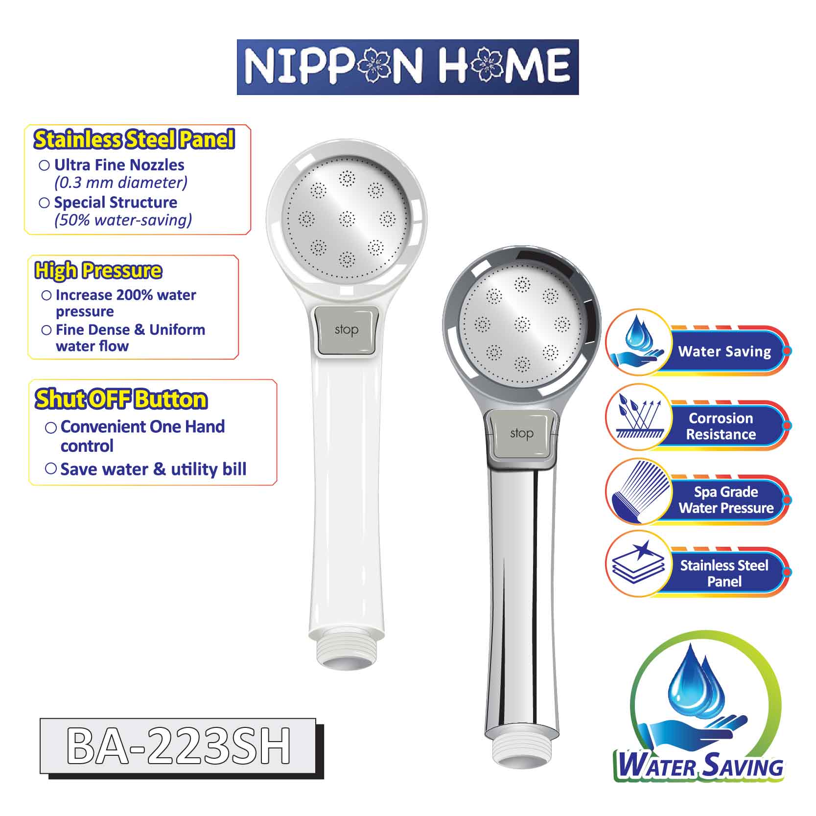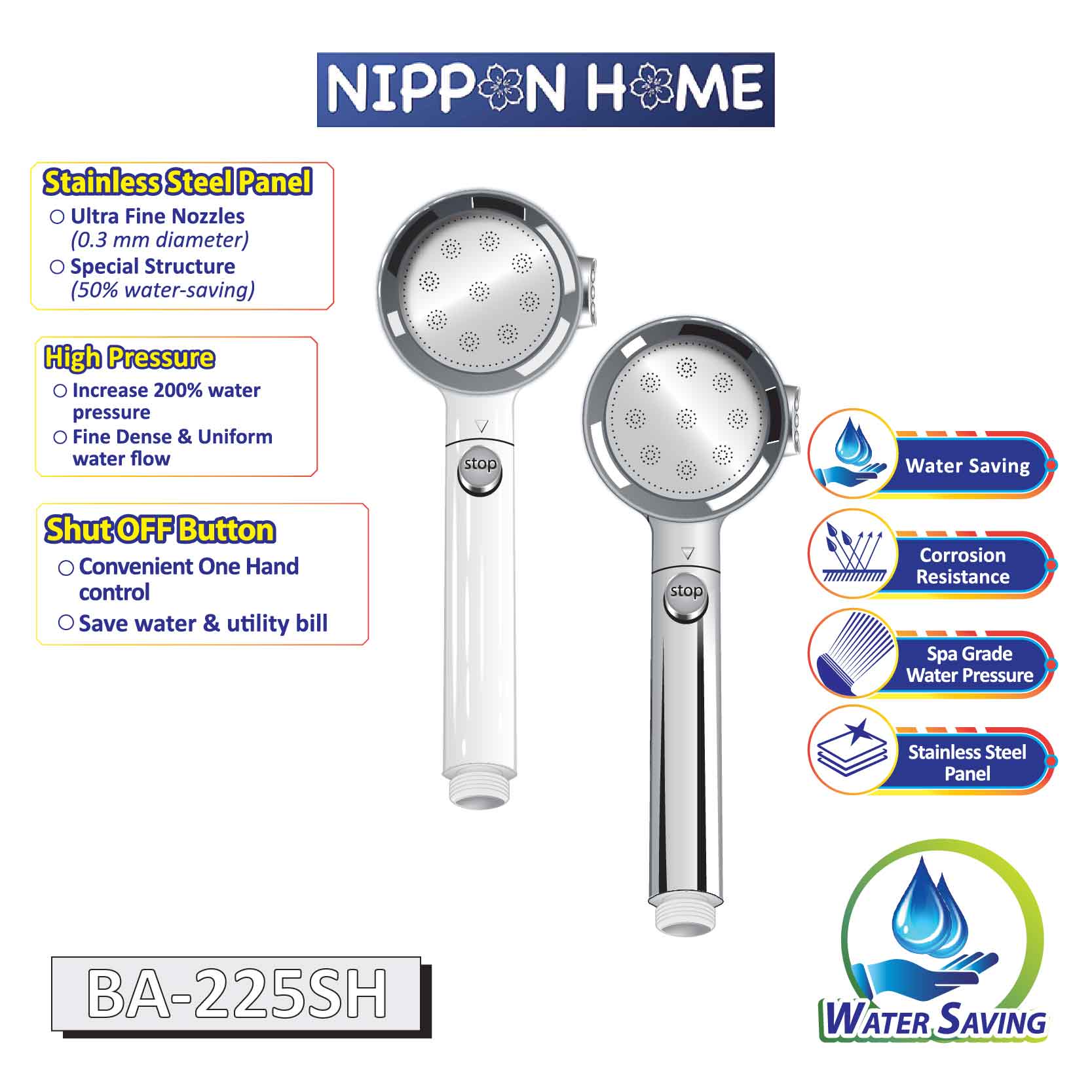 • Comes with inbuilt ON-OFF button to save water
