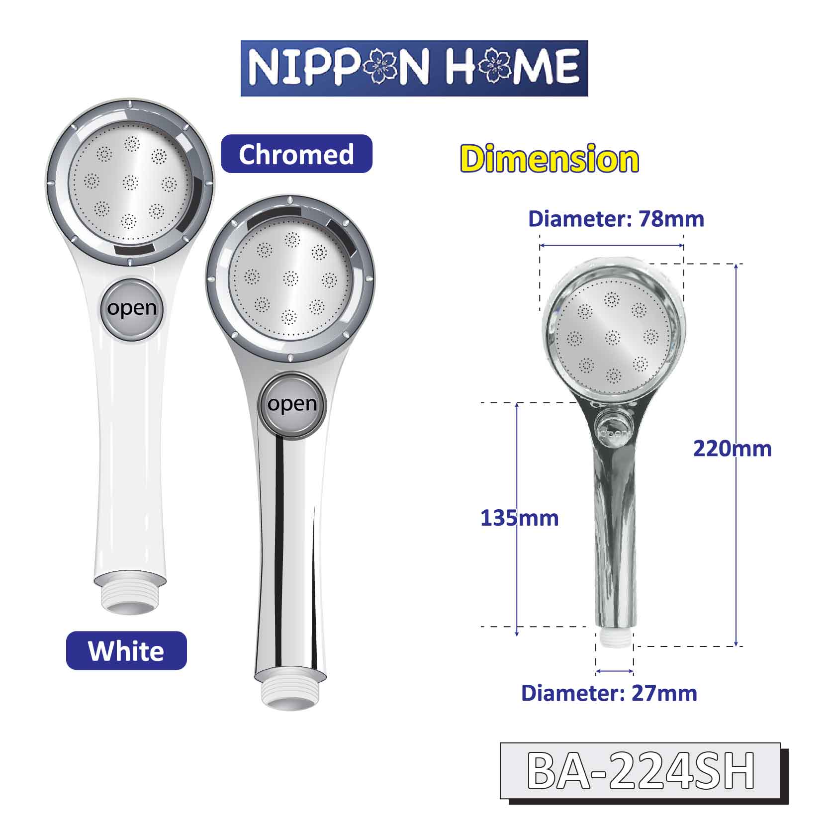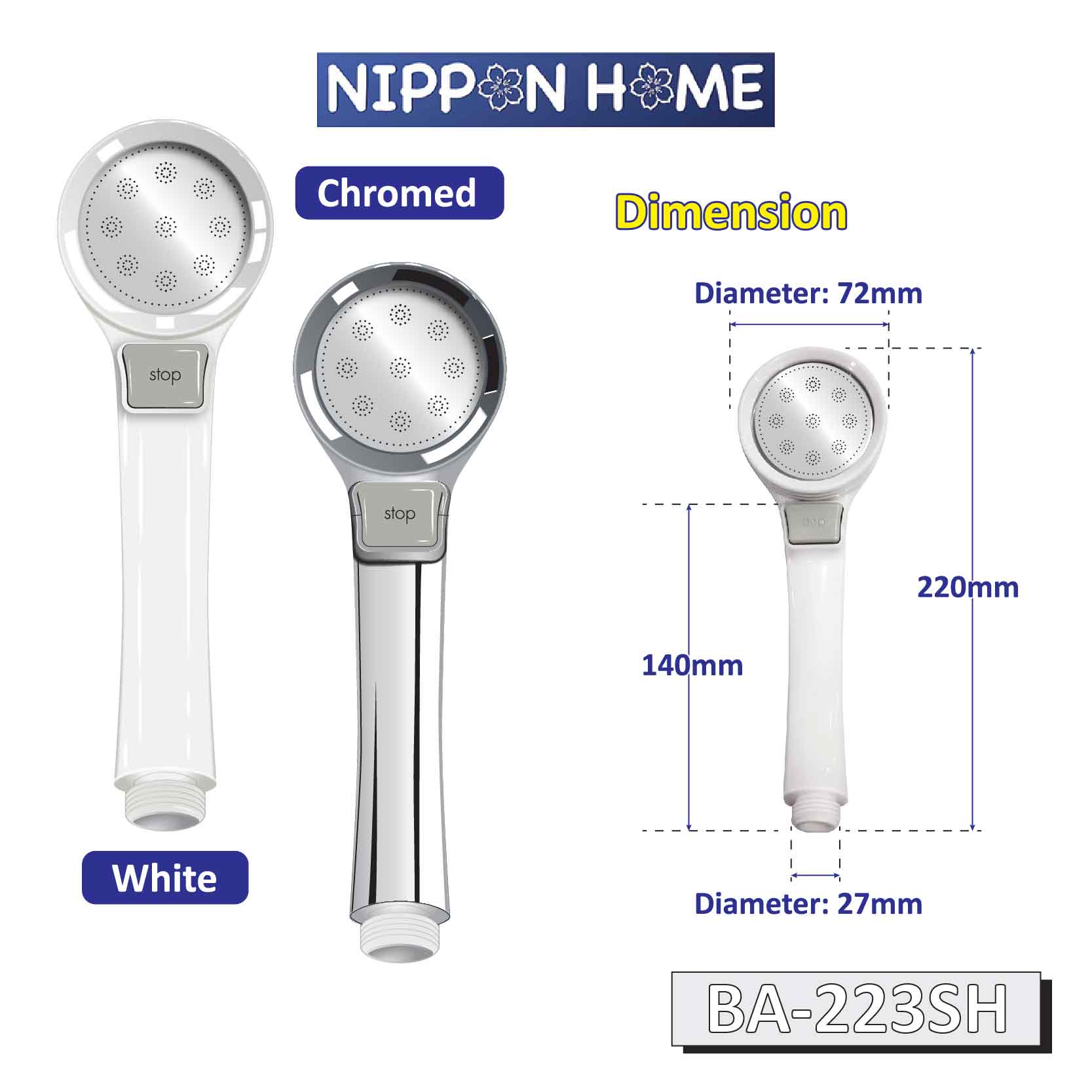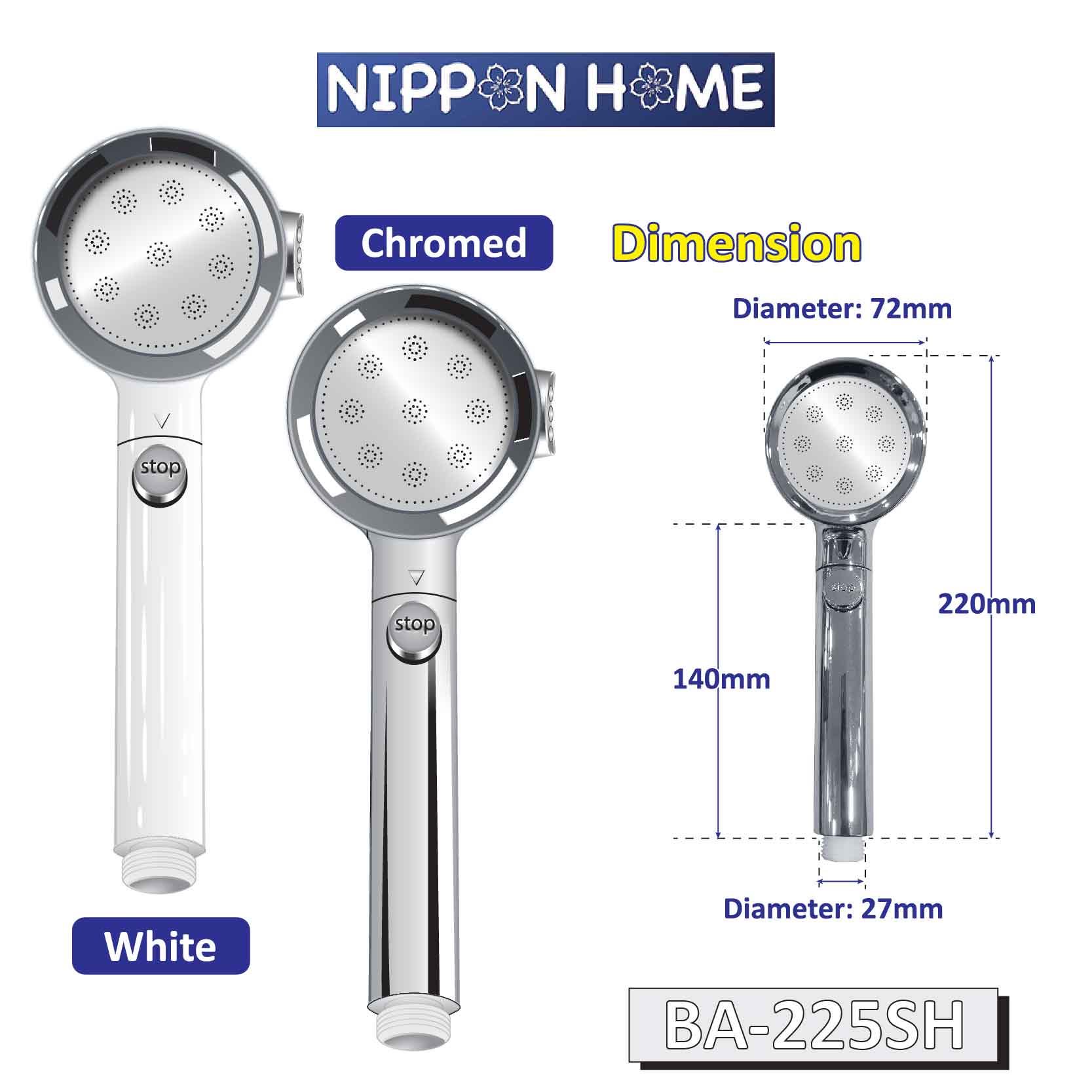 [Sanitary] A-Tech Multi Function 3 Way Spray Shower Head 3 Design & Two Colour Available